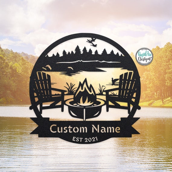 Campsite Monogram Lake Scene Personalized Sign Last Name Etsy
